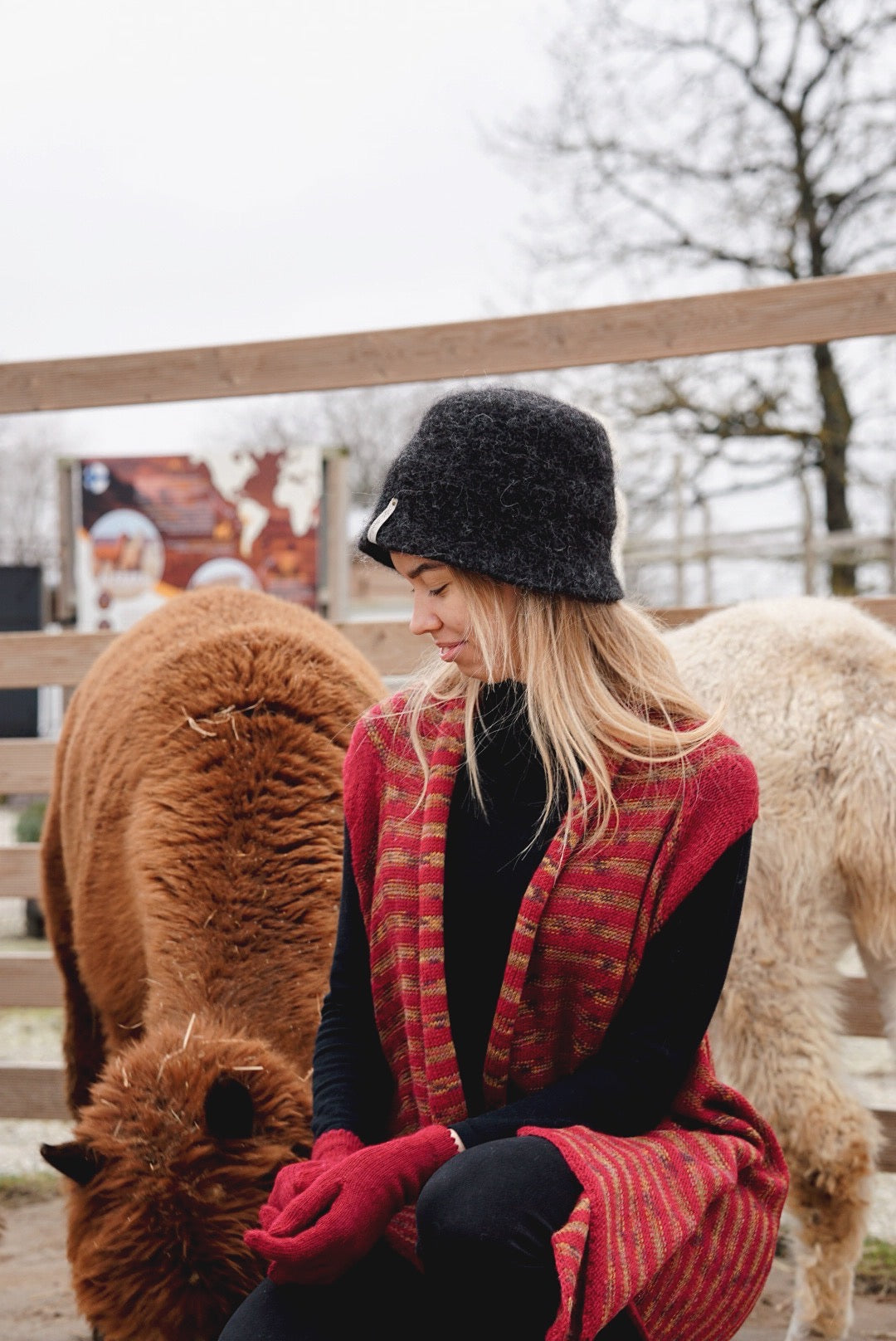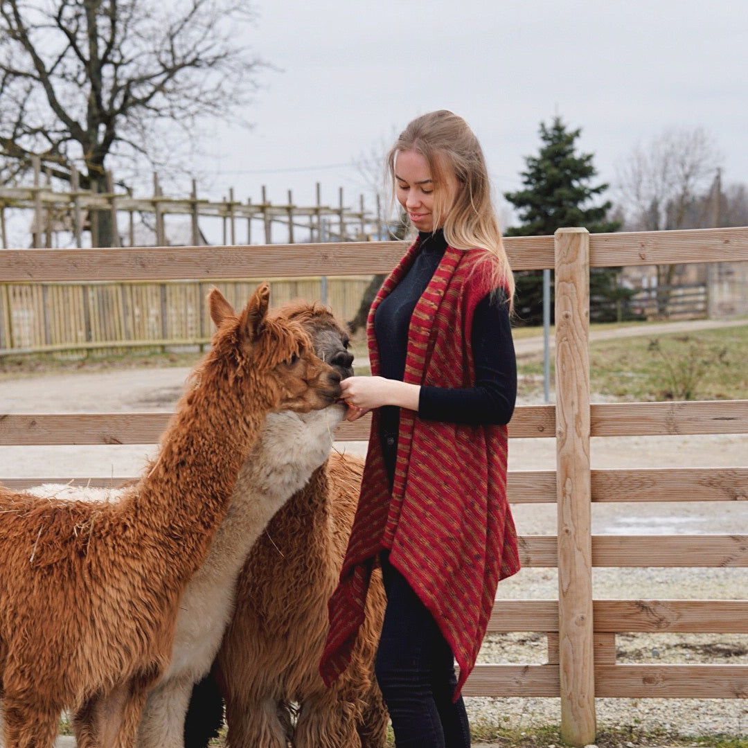 Sastāvs: 100% alpaka, kas satur arī ar rokām krāsotu dziju.