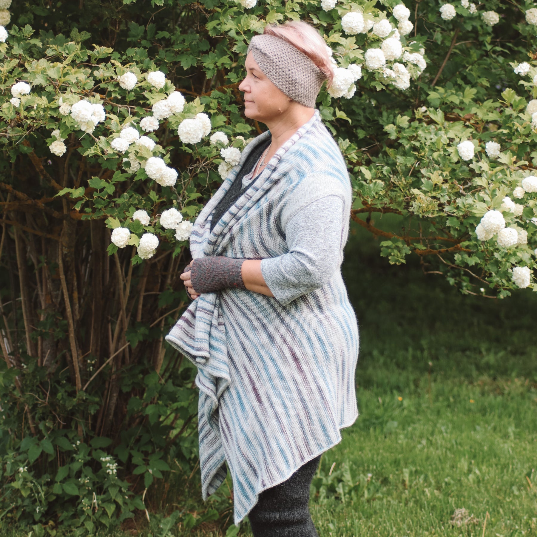 Sieviešu veste ar šalles apkakli.